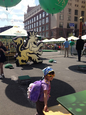 Развлекаловки от спонсоров. От VISA можно поиграть в настольный теннис, ПУМБ - фотозона и шарики, кальян, Львовское пиво, кофе Якобс, палатки с креслами-мешками и мониторами для просмотра конкурса, фото зоны, можно купить сувениры с символикой Евровидения, вышиванки, игрушки hand-made. На входе рамки металлоискательные.